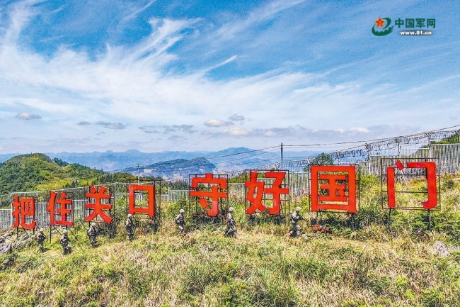 爬山和山脊巡逻边境 - 陆军边境国防公司的官员和士兵在值班,看着He Fanglin和Yang Dong和Liang Tong的照片,后者将军官和士兵带到巡逻队。巡逻队和士兵在边...